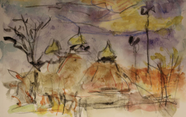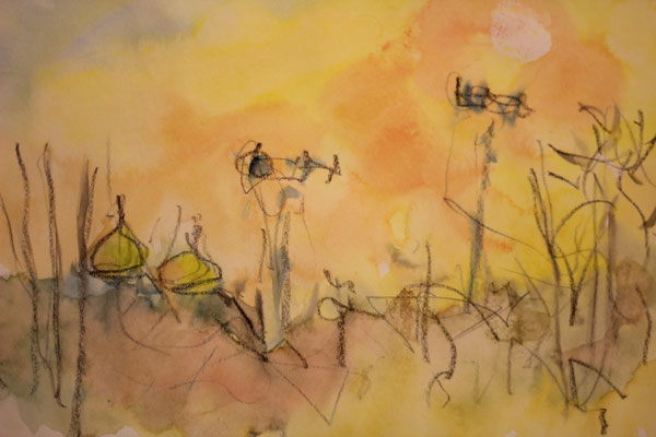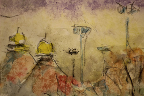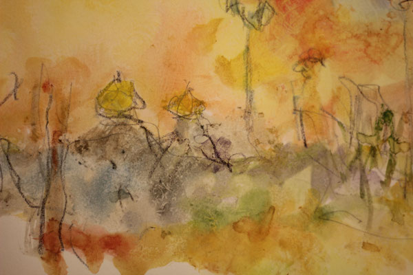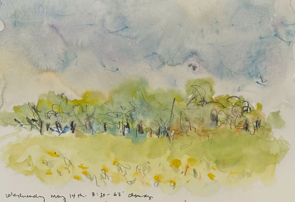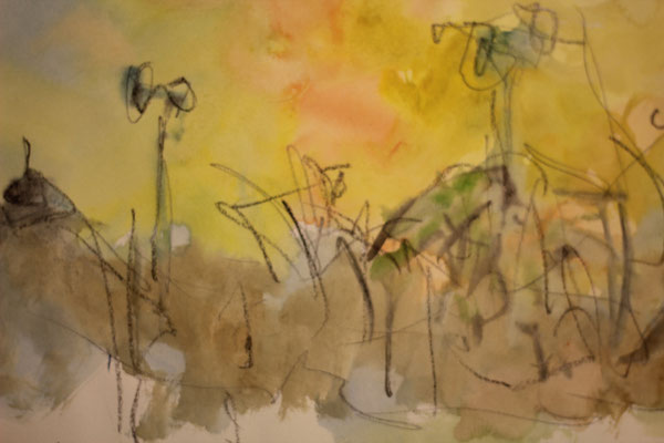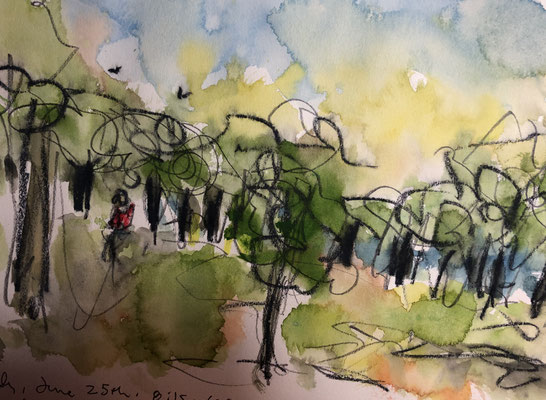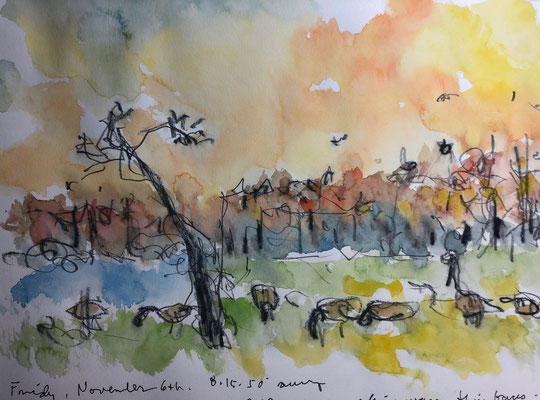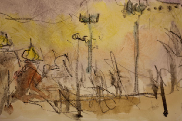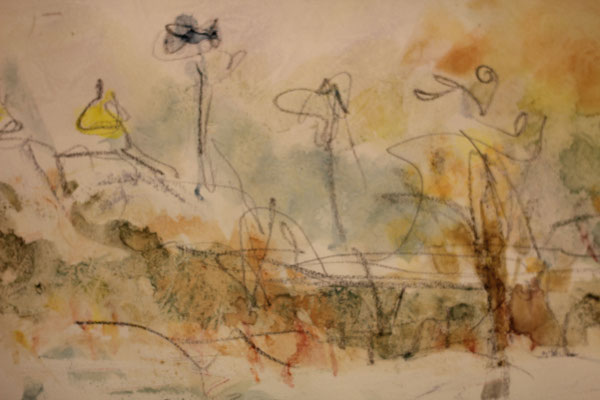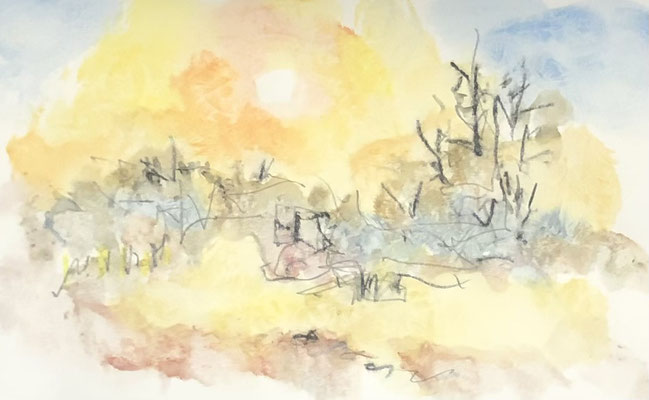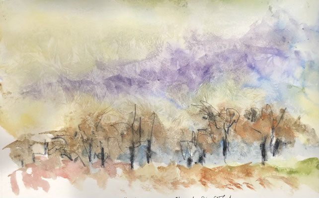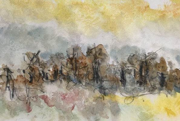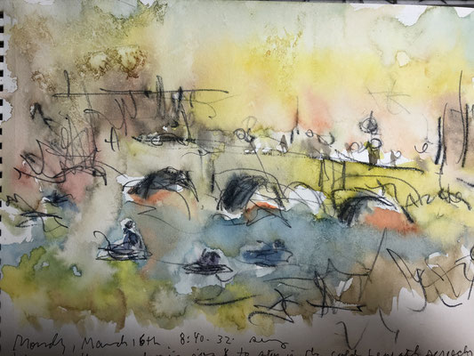 December 2017 onward: Morning at Belle Isle - samples: quick gouache & crayon sketches before walking through the woods. In winter temps the paint freezes on the paper leaving interesting frost marks.